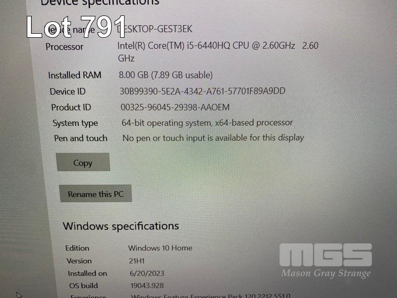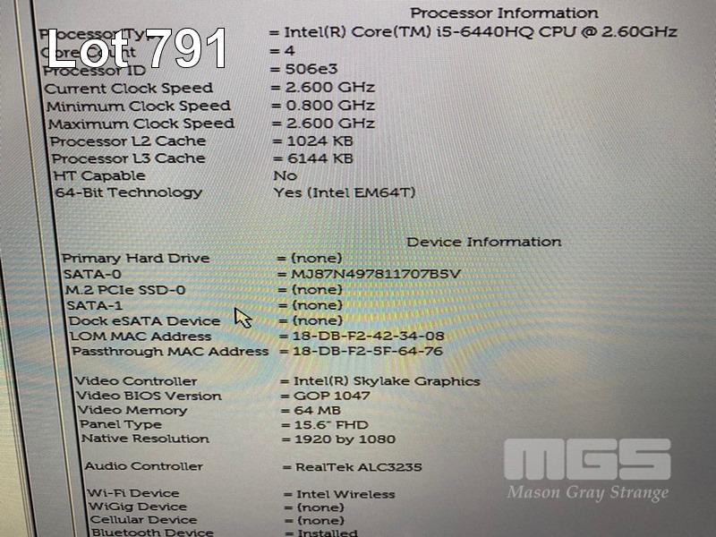 LAPTOP, DELL LATITUDE E5570, CORE i5 6440HQ (6TH GEN) @ 2.6GHz, 8GB DDR3 RAM, 256GB M.2 SSD, 15.6" WIDESCREEN (1920x1080), INTEL HD GRAPHICS 530, Wi-Fi, BLUETOOTH, WINDOWS 10 HOME INSTALLED & POWER SUPPLY (NOTE: WHITE SPOT SCREEN BLEMISHES, LOOSE SCREEN HINGE, CRACK LINE ON SCREEN FRAME CASING, MARKS ON SCREEN) S/N:CMQTPF2