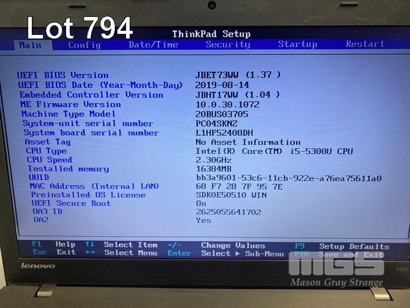 LAPTOP, LENOVO THINKPAD T450, TYPE 20BU, CORE i5 5300U (5TH GEN) @ 2.3GHz, 16GB DDR3 RAM, 525GB SSD, 14" WIDESCREEN (1366x768), INTEL HD VIDEO, Wi-Fi, BLUETOOTH, WINDOWS 10 PRO INSTALLED & POWER SUPPLY S/N:PC04SKNZ