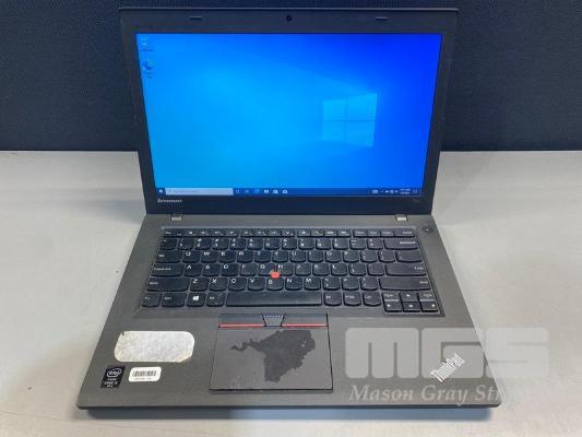 LAPTOP, LENOVO THINKPAD T450, TYPE 20BU, CORE i5 5300U (5TH GEN) @ 2.3GHz, 8GB DDR3 RAM, 256GB SSD, 14" WIDESCREEN (1366x768), INTEL HD VIDEO, Wi-Fi, BLUETOOTH, WINDOWS 10 PRO INSTALLED & POWER SUPPLY (NOTE: TOUCHPAD WORN) S/N:PC09BGMK