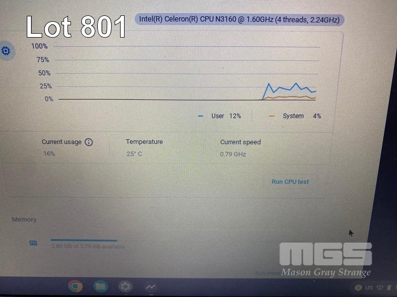 LAPTOP, ACER C731-C599 CHROMEBOOK, CELERON N3160 @ 1.6GHz, 4GB DDR3 RAM, 32GB FLASH, 11.6" WIDESCREEN, CHROME OS INSTALLED & POWER SUPPLY S/N:84303562076