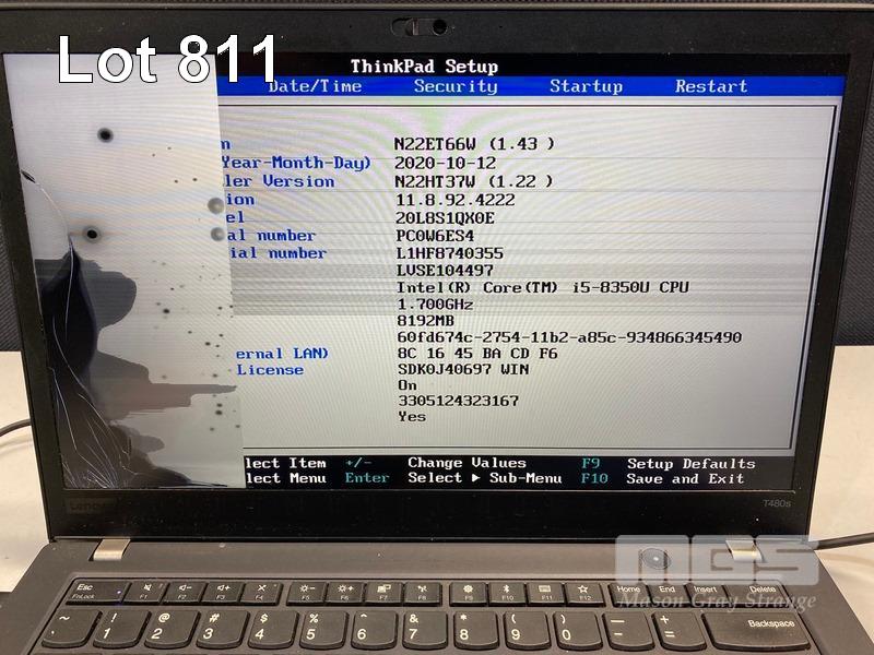 8 x LAPTOPS, LENOVO THINKPAD T480s, TYPE 20L8, INC. - 5 x CORE i5 8350U (8TH GEN) @ 1.7GHz, 8GB DDR4 RAM, 256GB NVMe M.2 SSD - 2 x CORE i7 8650U (8TH GEN) @ 1.9GHz, 8GB DDR4 RAM, 256GB NVMe M.2 SSD - 1 x DEAD, SPECS UNKNOWN, NO RAM, NO HDD (NOTE: ALL NO POWER SUPPLIES, ALL DAMAGED SCREENS, 1 x WITH DAMAGED BASE, SOME BATTERIES NOT CHARGING) S/N:PC121EEE, PC0Z5FTA, PC16NA6C, PC0XPER3, PC0Z4BAH, PC0XPER0, PC0W6ES4, PC0YMQ61