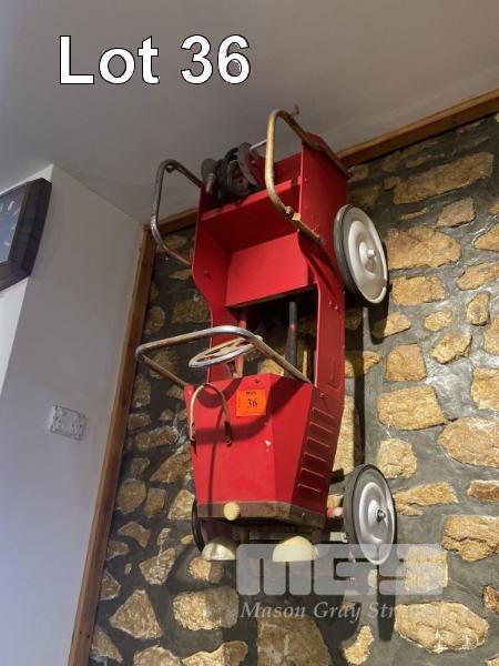 TIN PEDAL CAR FIRE ENGINE WITH HOSE REEL