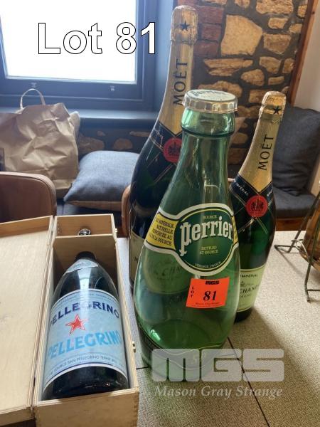 LARGE EMPTY PERRIER DISPLAY BOTTLES & PELLEGRINO