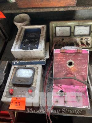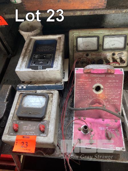 OLD SCHOOL TEST EQUIPMENT, COIL-CONDENSER CHECK, CAM ANGLE METER, MOTOR TESTER & REPCO VOLT/AMP TESTER