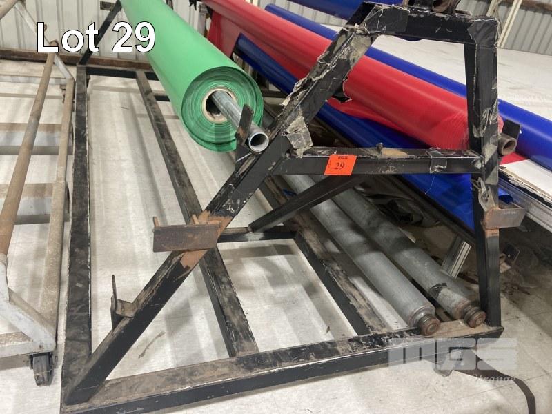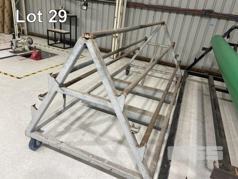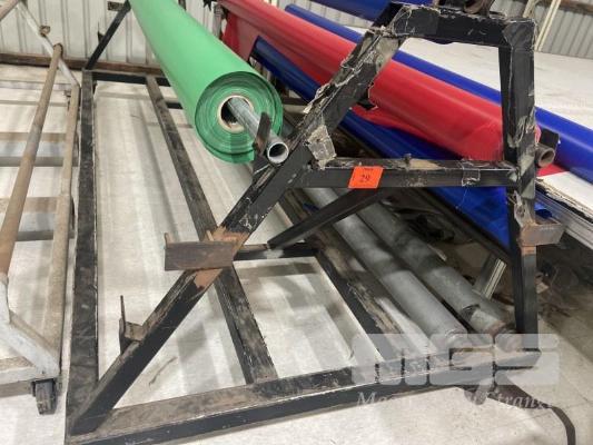 PAIR MOBILE STOCK RACKS, (TAKES 3m ROLLS) PLUS ONE RACK 2400. IN YARD.