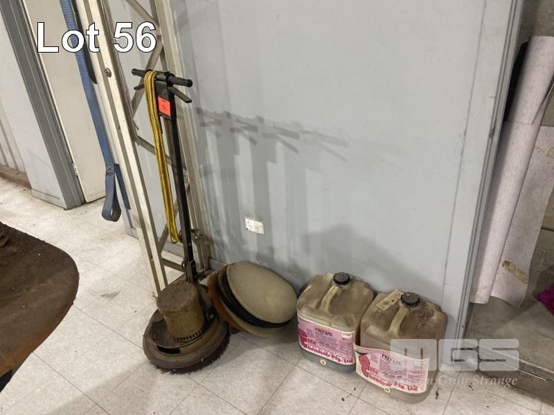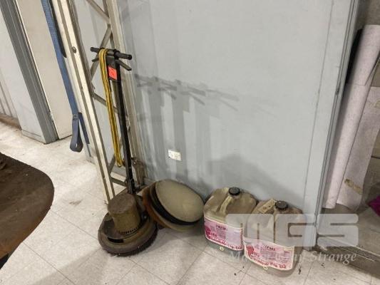 FLOOR POLISHER, 240V, ASSORTED BUFFS & 2 x 20 LITRE DRUMS POLISH