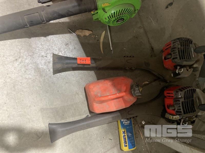 2 x YARD BLOWERS, HOMELITE & 10 LITRE FUEL CAN