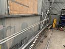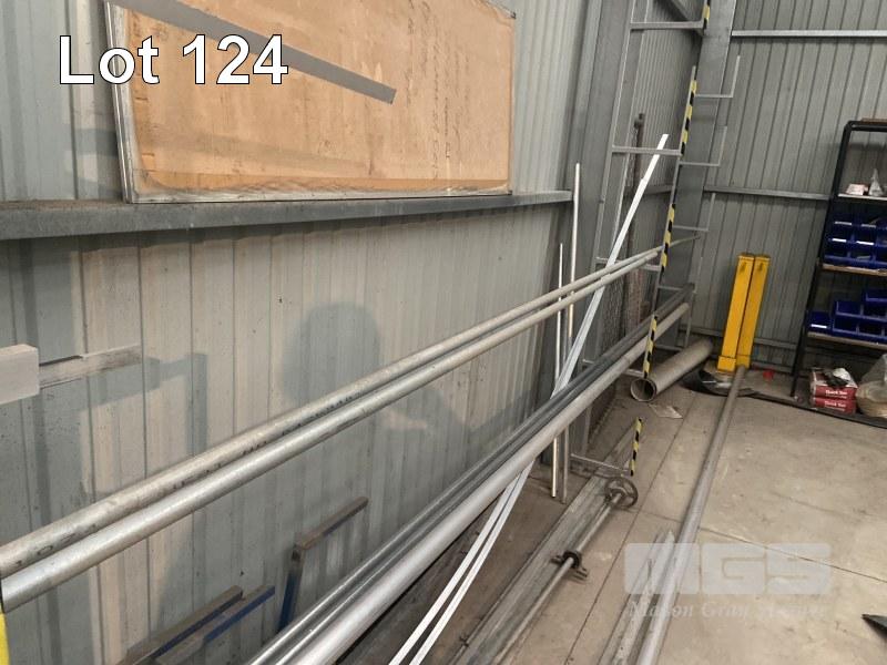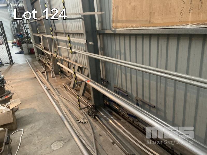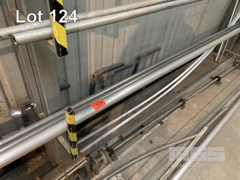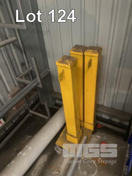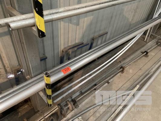 ASSORTED ALUMINIUM TUBE RECT SECTION, ANGLE, ETC CONTENTS RACK & 3 x YELLOW BOLLARDS