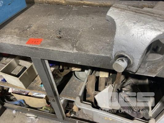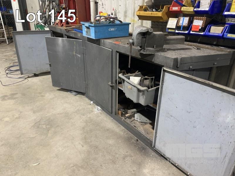 STEEL WORKSHOP BENCH, HEAVY DUTY, 3000 (L) x 1000 (H) x 600mm (D) 4 DOOR & VICE, 200mm SWIVEL