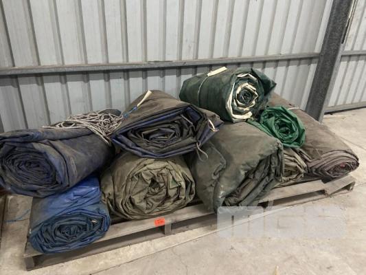 9 x USED TRUCK TARPS, VARIOUS SIZES