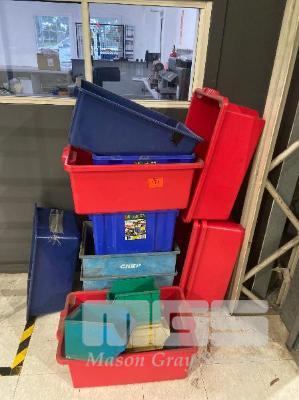 11 x PLASTIC TUBS & 4 x PARTS BINS