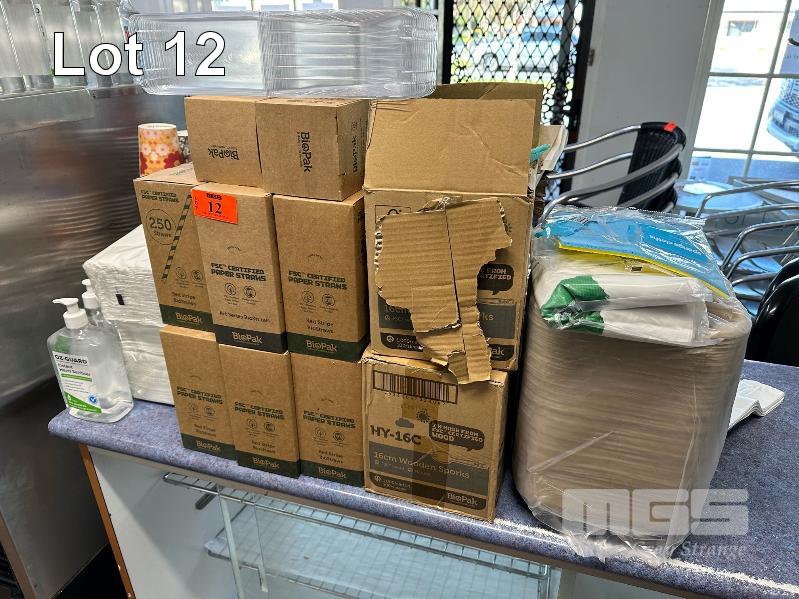 QUANTITY PAPER STRAWS, COFFEE CUPS, COFFEE TRAYS, PAPER BAGS, ETC