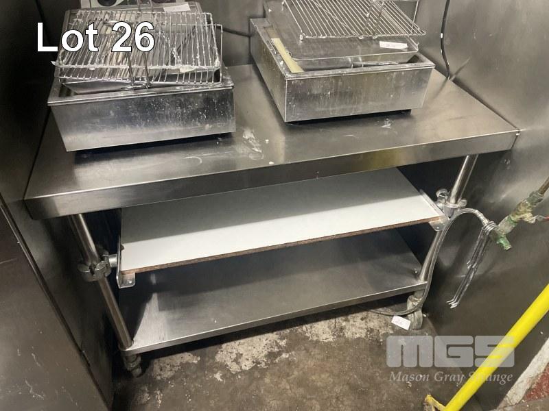 STAINLESS STEEL PREP BENCH, MOBILE, 3 TIER, 120 x 60cm