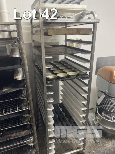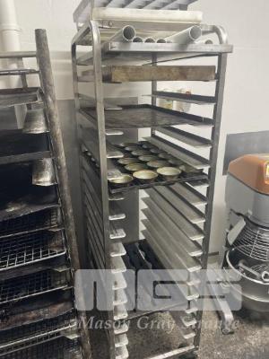 BAKERS TRAY RACK, 18 TIER ON CASTORS