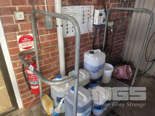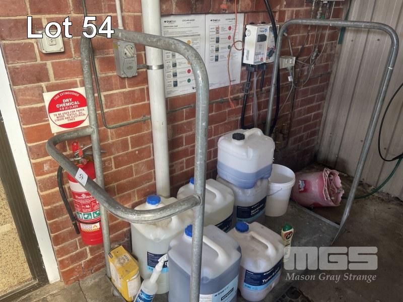 CHEMICAL TROLLEY & 6 x FULL & PART DRUMS CLEANING LIQUID