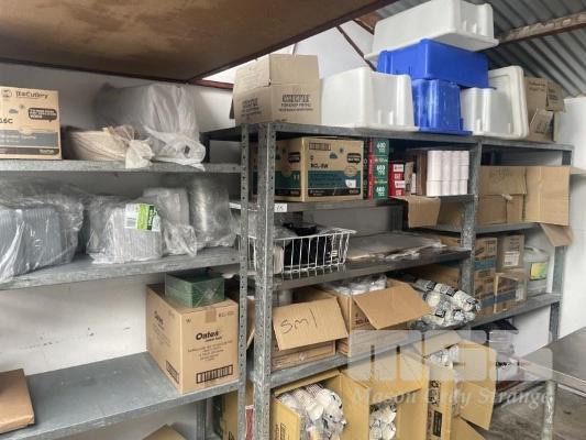 LARGE QUANTITY ASSORTED TAKEAWAY CONTAINERS, COFFEE CUPS, LIDS, CLING WRAP, ALUMINIUM FOIL, FOIL CONTAINERS, PVC CUPS, STRAWS, SPORKS & MORE