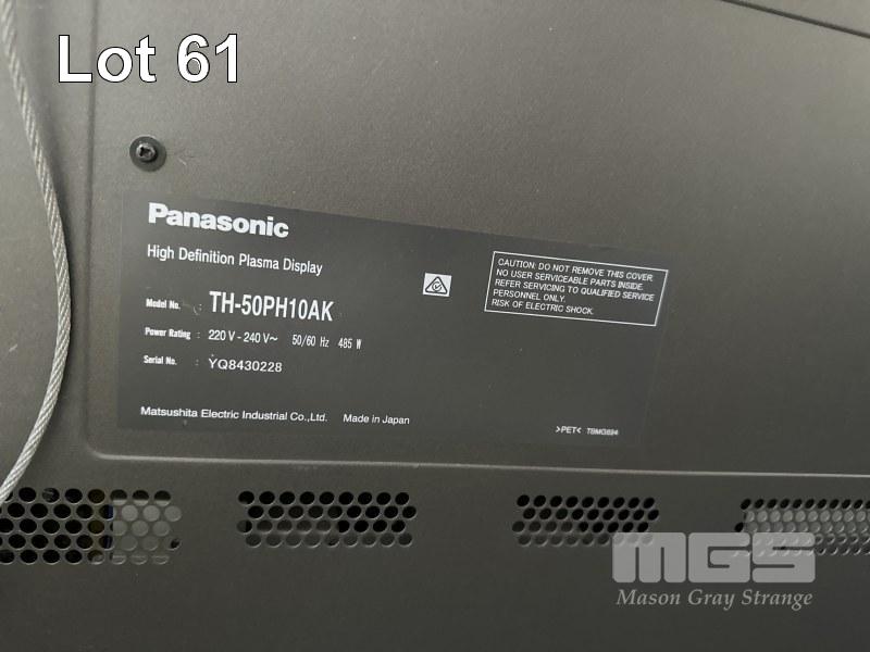 2 x PANASONIC PLASMA 50" DISPLAYS WITH 1 x WALL BRACKET (NO REMOTES, NO STANDS)