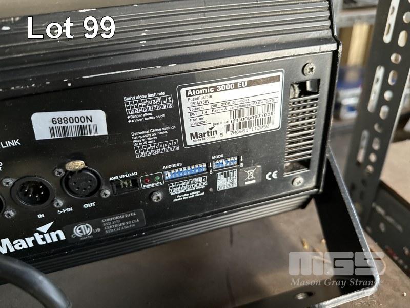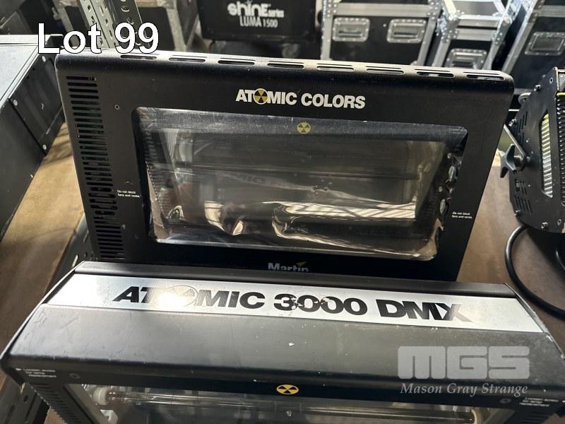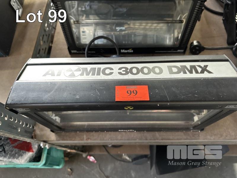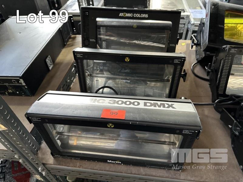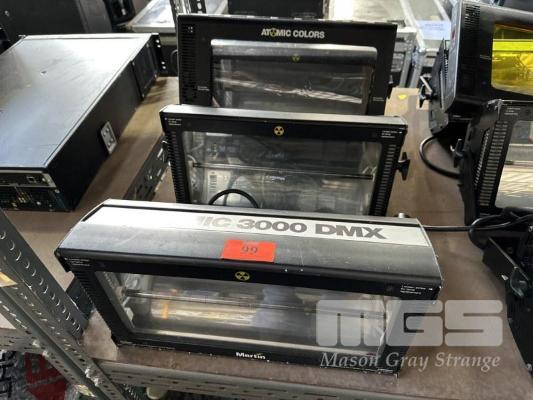 3 x MARTIN ATOMIC 3000 DMX STROBE LIGHTS WITH 1 x ATOMIC COLORS SCROLLER