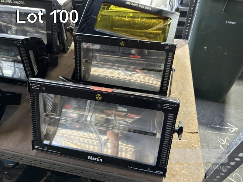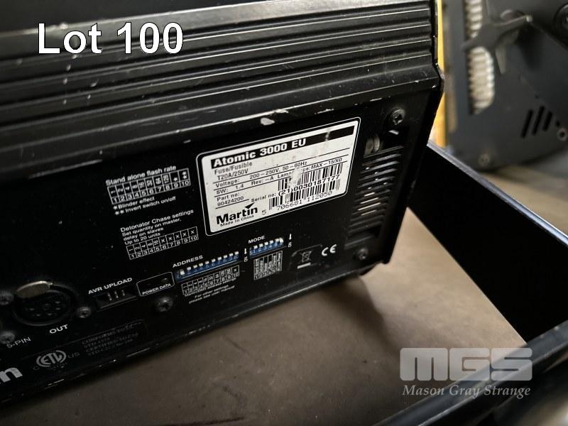3 x MARTIN ATOMIC 3000 DMX STROBE LIGHTS WITH 1 x ATOMIC COLORS SCROLLER