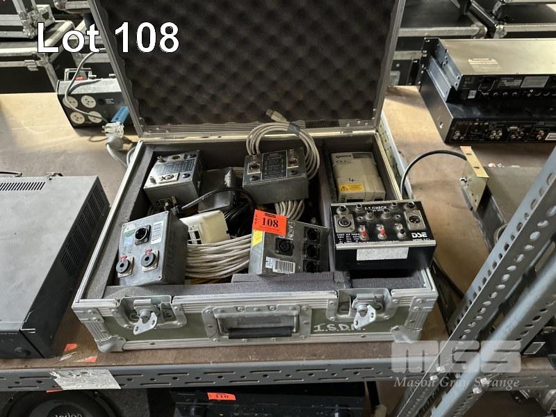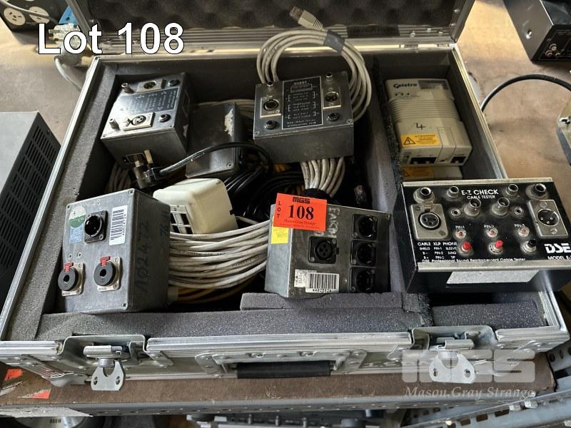 ISDN CASE WITH E-Z CHECK CABLE TESTER, QUEST LINE TO MIC TRANSFORMER ETC