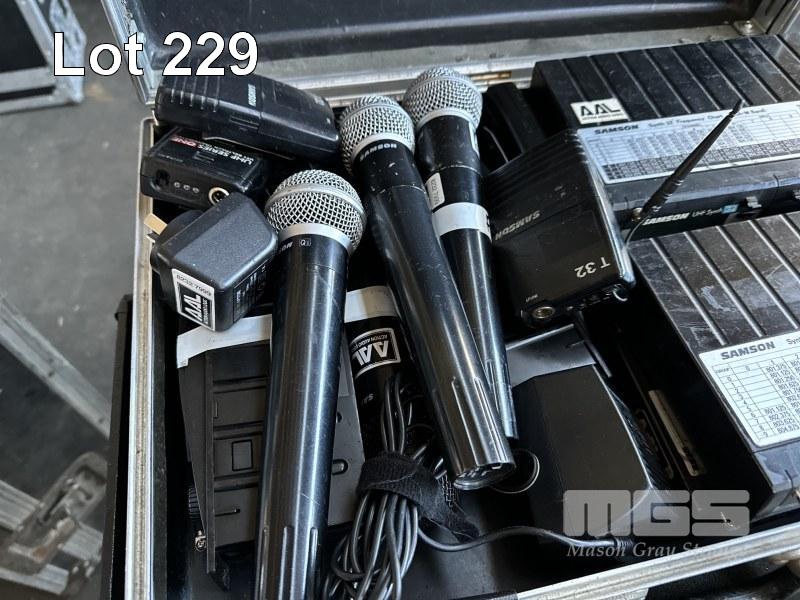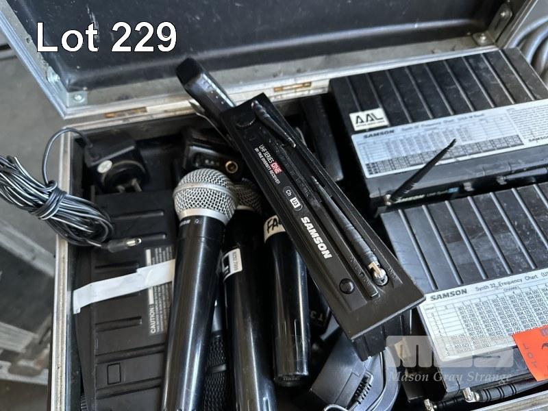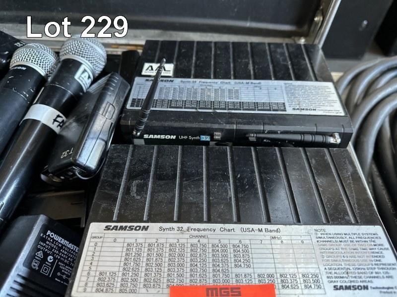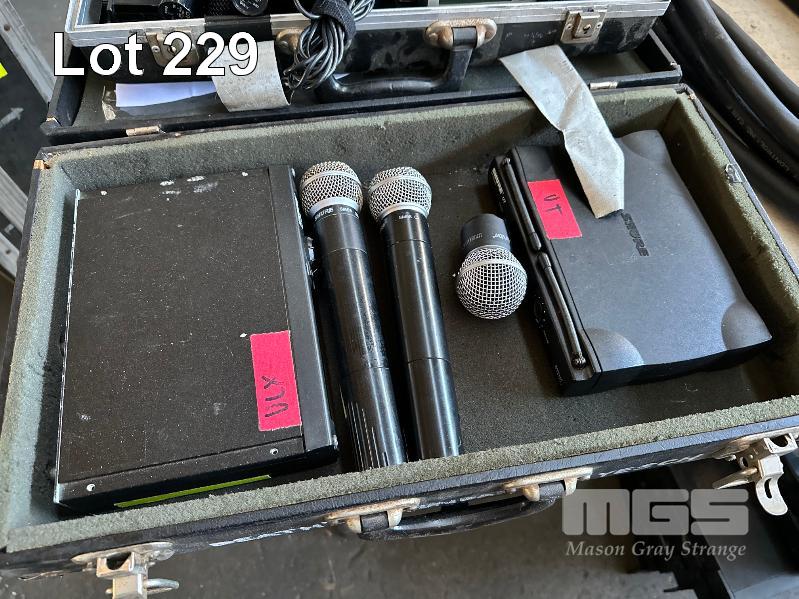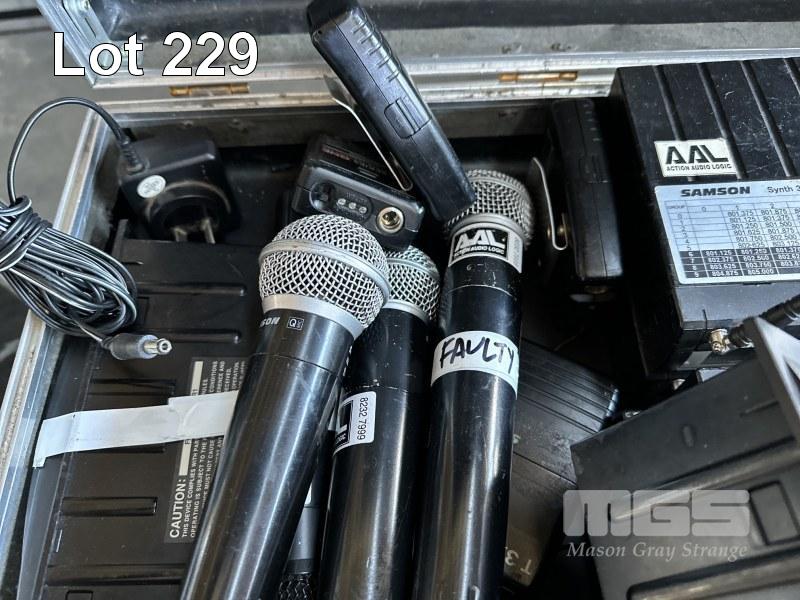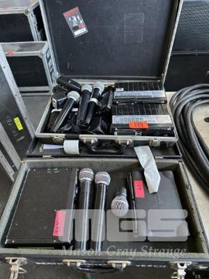 SAMSON WIRELESS AUDIO SYSTEM & MICROPHONES (SOME WITH FAULTS) (NO POWER SUPPLIES) SHURE WIRELESS AUDIO SYSTEM & MICROPHONES (NO POWER SUPPLIES) IN CASES