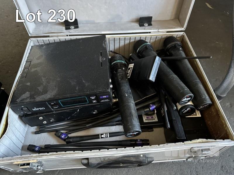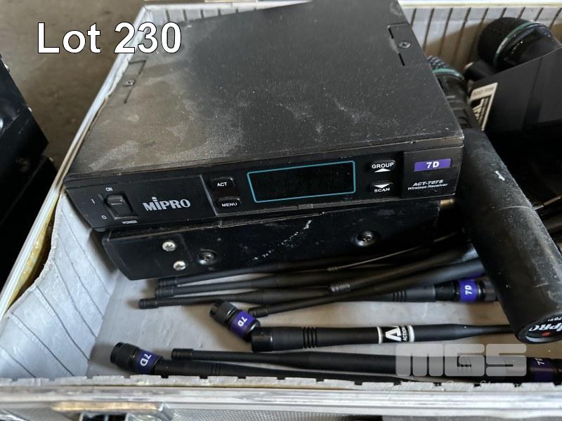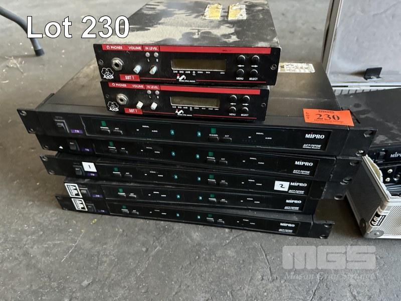 MIPRO WIRELESS AUDIO SYSTEM, MICROPHONES (NO POWER SUPPLIES) IN CASE WITH 5 x ACT-707DE WIRELESS RECEIVERS & 2 x AKG SST 1 TRANSMITTERS (NO CABLES)