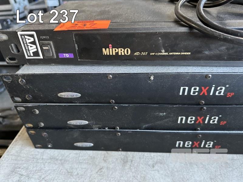 3 x NEXIA PM BIAMP PRESENTATION MIXERS (NO CABLES) MIPRO AD-7070 UHF 4 CHANNEL ANTENNA DIVIDER WITH 2 x AT-90R ANTENNAS