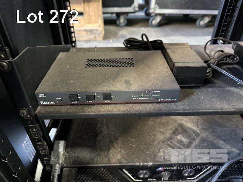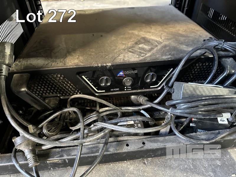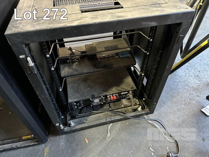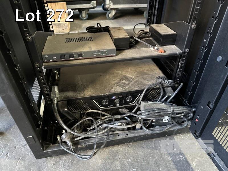 DATA RACK CABINET, 68 x 60 x 59cm WITH AUSTRLIAN MONITOR XA1000 AMPLIFIER & EXTRON DTP T USW 233 SWITCHER