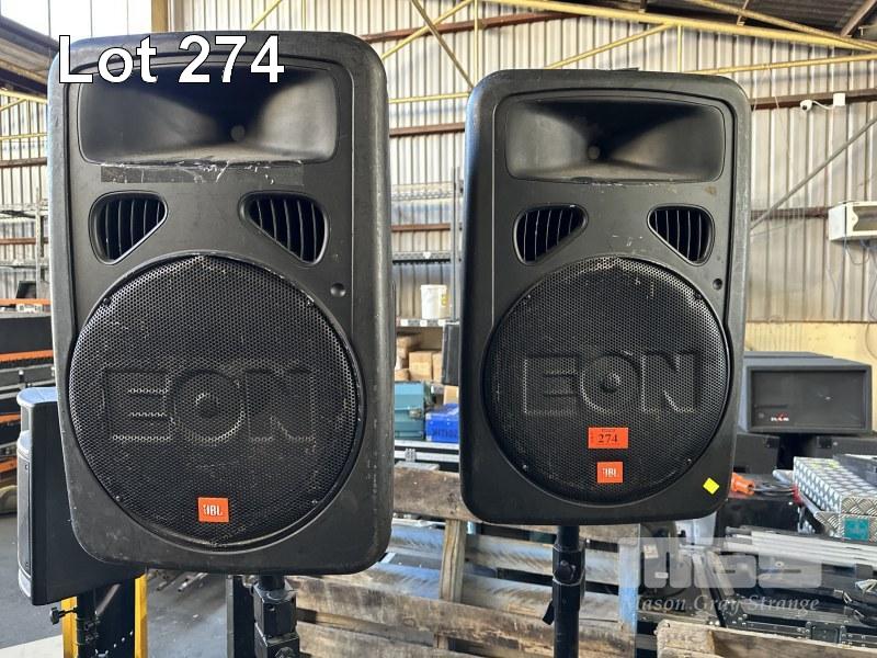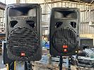 2 x JBL EON15 G2 POWERED SPEAKERS WITH WIND-UP TRIPODS