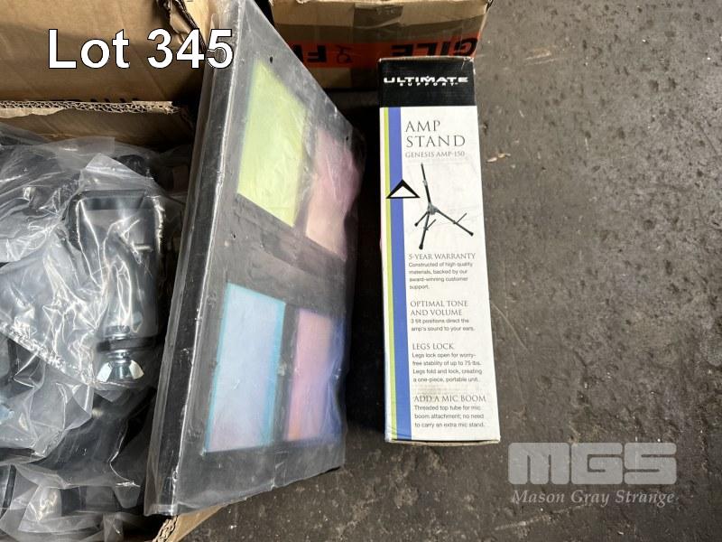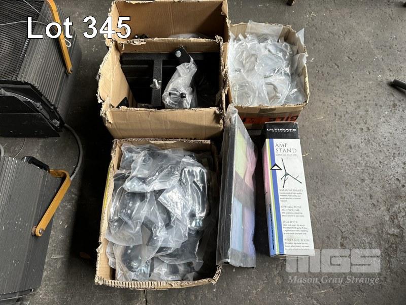 QTY HOOK CLAMPS, SAFETY STRAPS, AMP STAND ETC