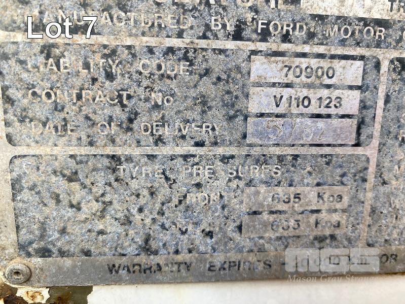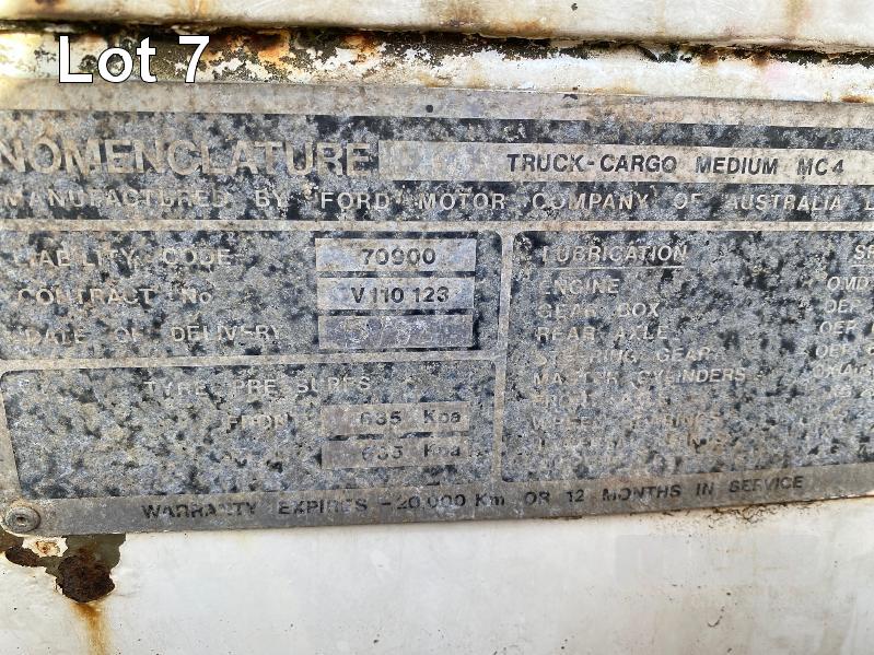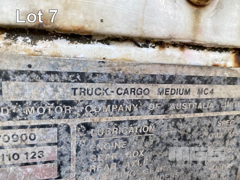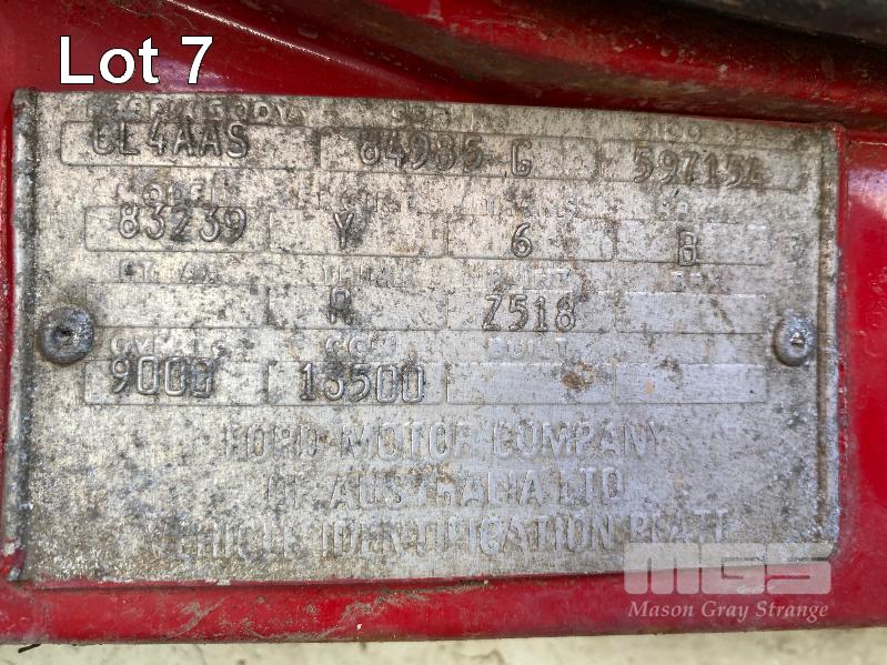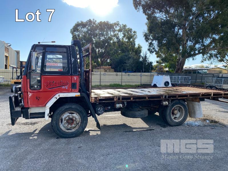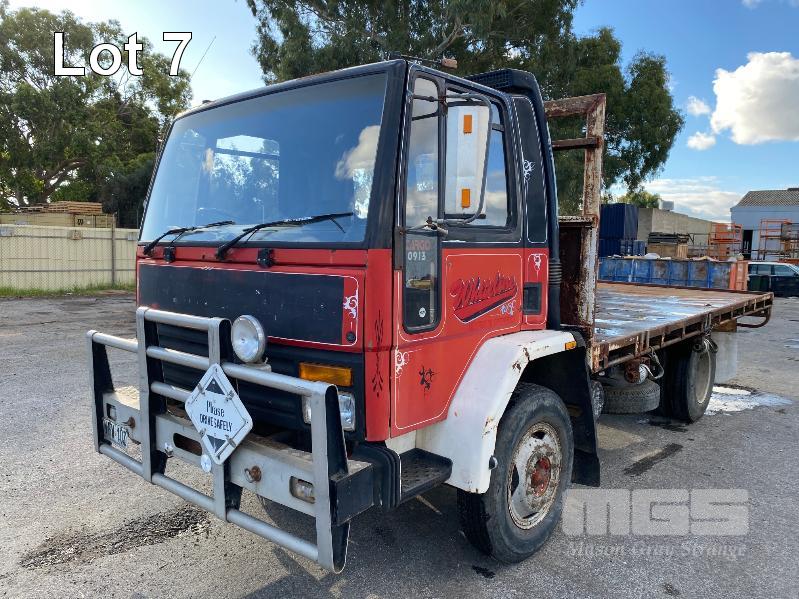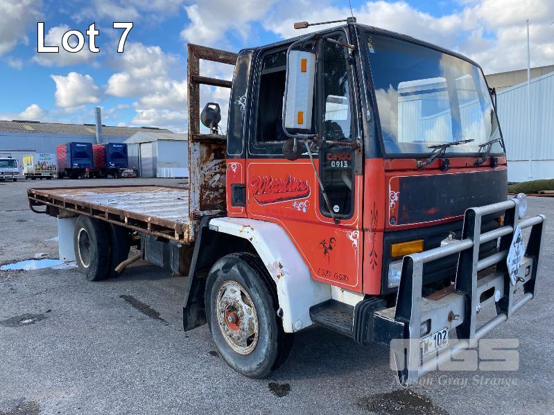 1982 FORD CARGO 0913 MC4 4x2 SINGLE CAB TRAYTOP UTILITY REG: VFW 102 (SA) VIN: CL4AAS84985G597154 ODO: 187,806kms SHOWING GVM: 9,000kg GCM: 13,500kg FORD, 6 CYLINDER DIESEL, 6 SPEED MANUAL TRANSMISSION, SPRING SUSPENSION, RED DUCO, 2 DOORS, 2 SEAT, STEEL TRAY, ALLOY BULL BAR SPARE WHEEL LOAD BINDERS KEY #42 (WITH 1 KEY/S)