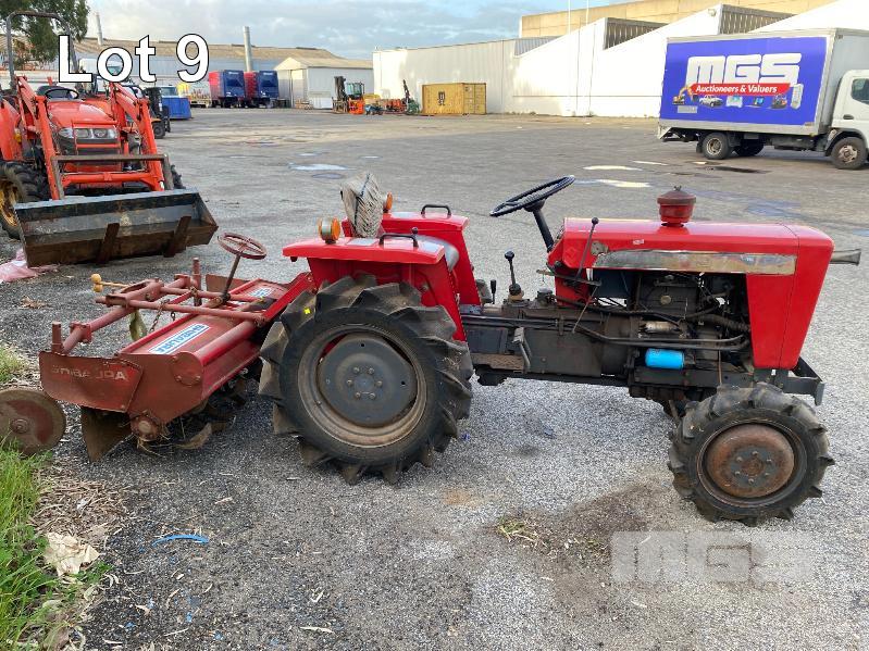 TRACTOR, SHIBAURA 4x4 MOD: S700-0 S/NO: LE752A-18464 TWIN CYLINDER DIESEL ENGINE HOURS: 946 SHOWING KEY# 33 MANUAL, 3 SPEED, 3 RANGE, PTO, 3PTL FITTED WITH ROTARY HOE, SHIBAURA MOD: SRE2A 1300mm (W), 13 ROW BLADES KEY# 33