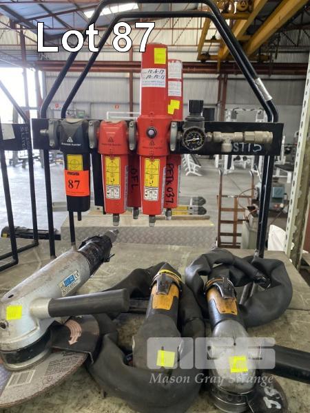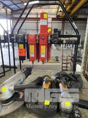 IN STEEL STAND WITH 3 x PNEUMATIC DISC GRINDERS/SANDERS INC