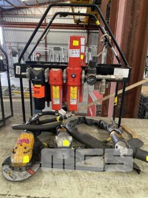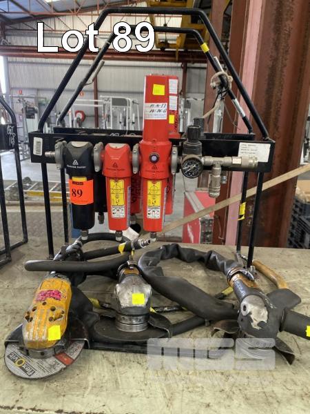 IN STEEL STAND WITH 3 x PNEUMATIC DISC GRINDERS/SANDERS INC