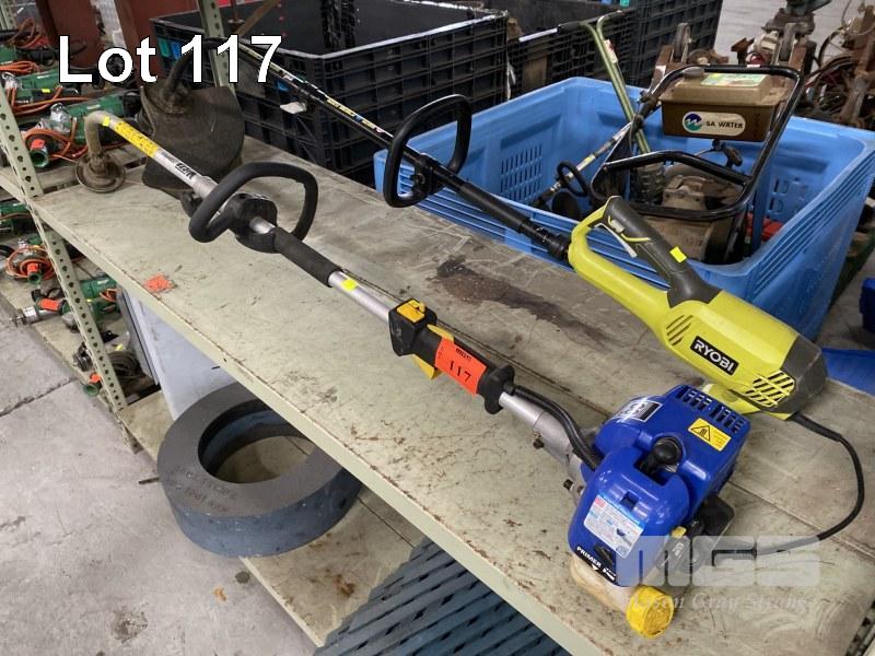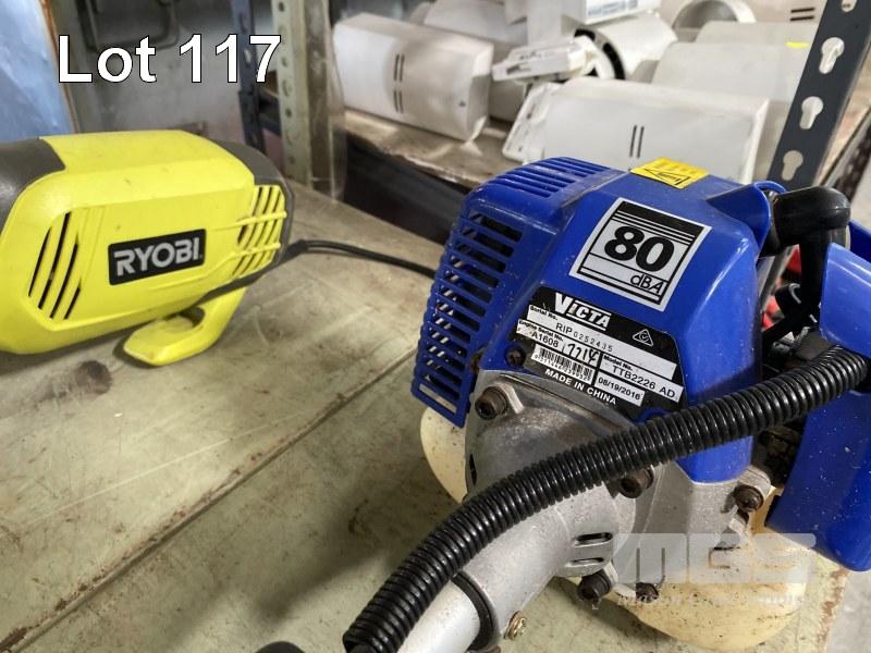 2 x LINE TRIMMERS, VICTA TTB226AD, PETROL & RYOBI, 240V