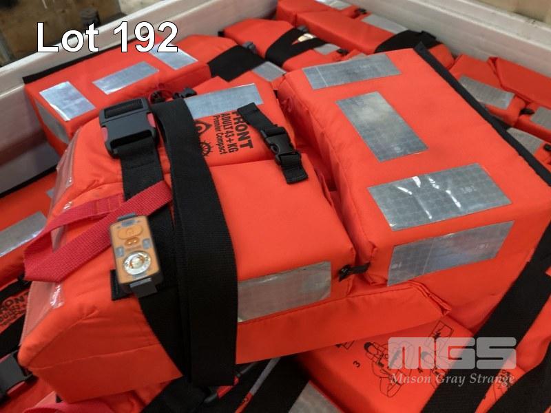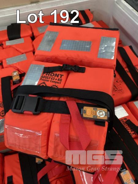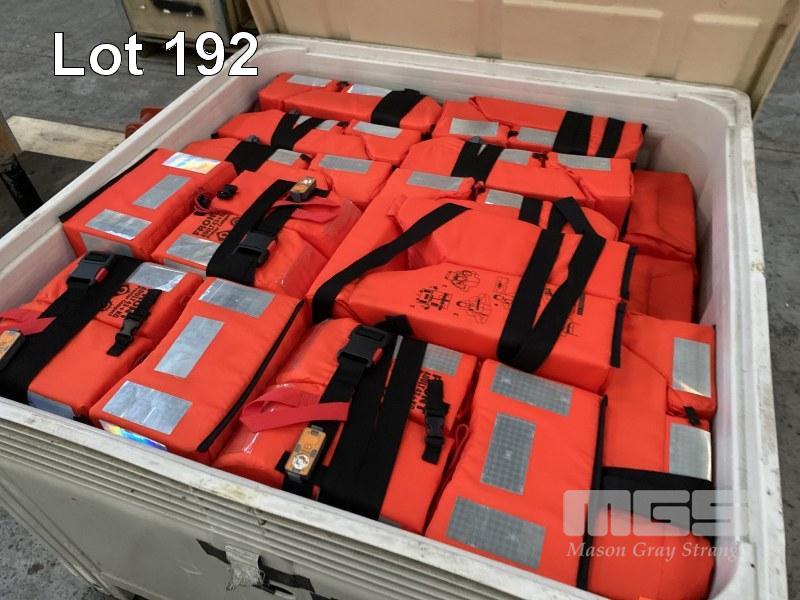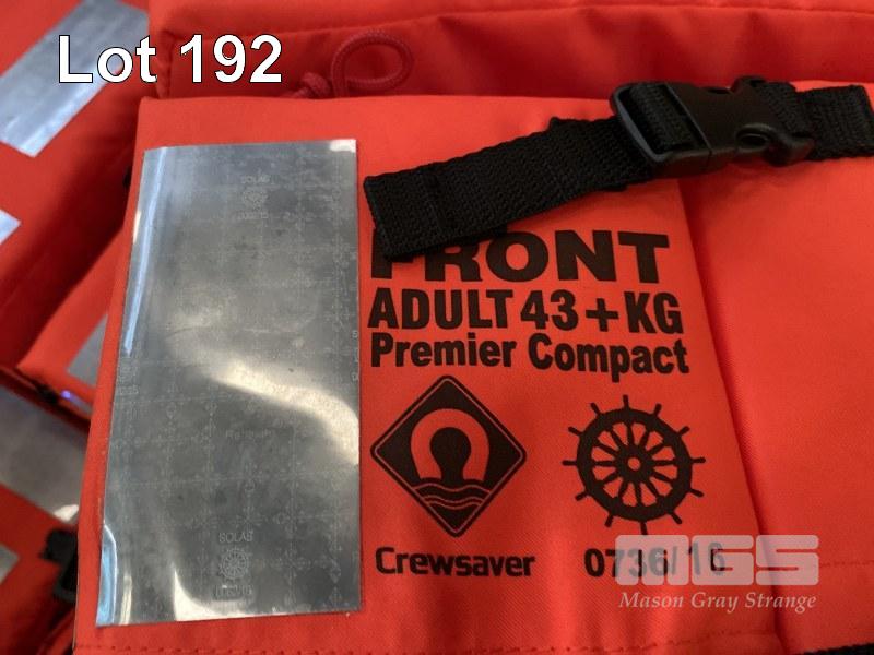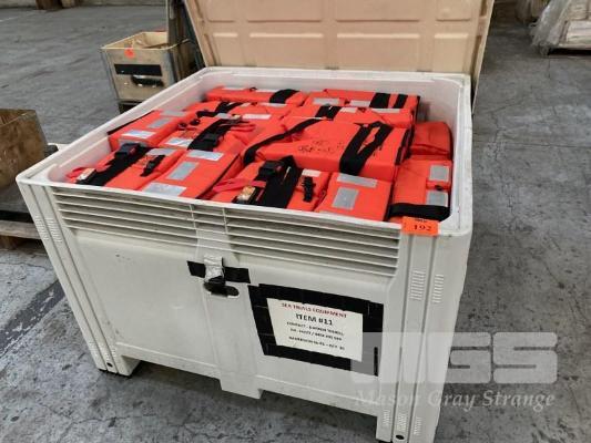 30 x LIFE JACKETS, CREW SAVER MOD: PREMIER COMPACT 0736/16 SUIT PERSON WEIGHT 43kg OR MORE WITH ILLUMINATED FLASHING BEACON LIGHT WATER OR SELF ACTIVATED HIGH VIS REFLECTIVE TAPE WITH NALLY MEGA BIN 1160 x 1160 x 780mm (H)