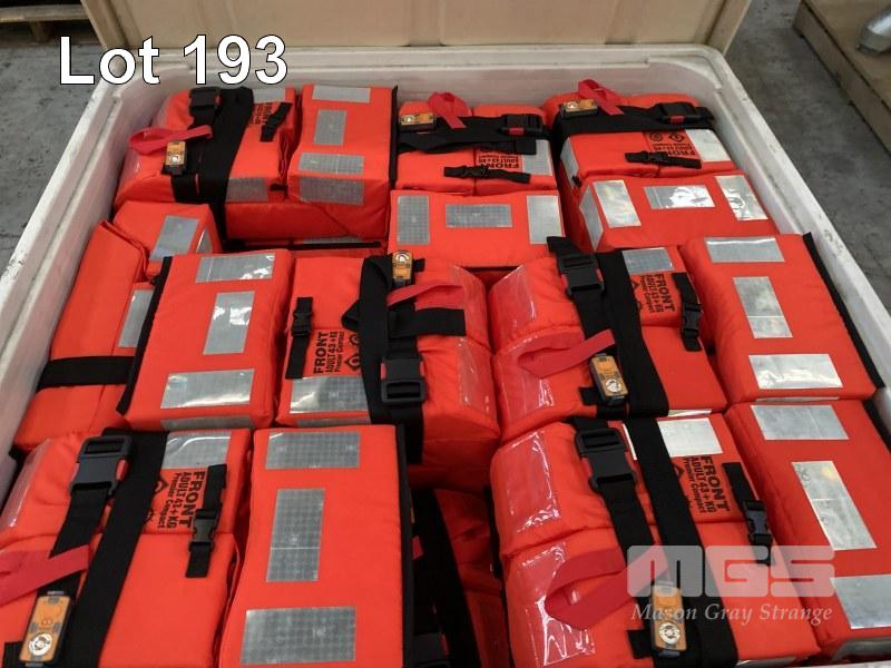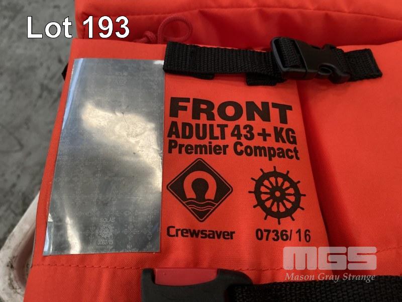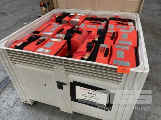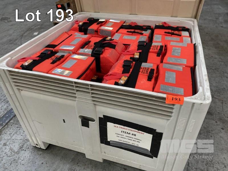 30 x LIFE JACKETS, CREW SAVER MOD: PREMIER COMPACT 0736/16 SUIT PERSON WEIGHT 43kg OR MORE WITH ILLUMINATED FLASHING BEACON LIGHT WATER OR SELF ACTIVATED HIGH VIS REFLECTIVE TAPE WITH NALLY MEGA BIN 1160 x 1160 x 780mm (H)