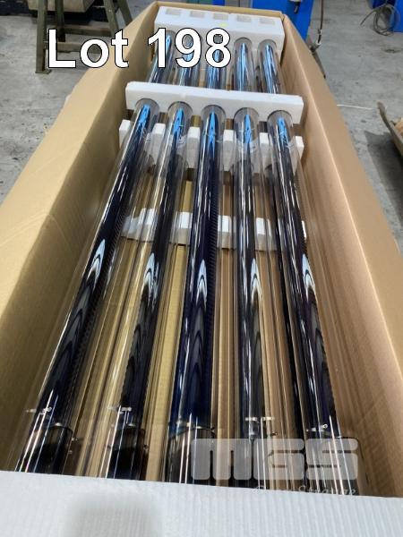 SOLAR ARRAY WATER HEATING TUBES & MANIFOLD 1 x MANIFOLD/FRAME NEW IN BOX 3 x BOXES OF SOLAR TUBES, 10 PER BOX TUBES ARE VACUUM SEALED, HEAT INTENSIFIES INSIDE TUBE TO TRANSFER HEAT TO COPPER END TIP, THE END TIP FITS INTO MANIFOLD TO TRANSFER HEAT INTO WATER IN THE MANIFOLD.