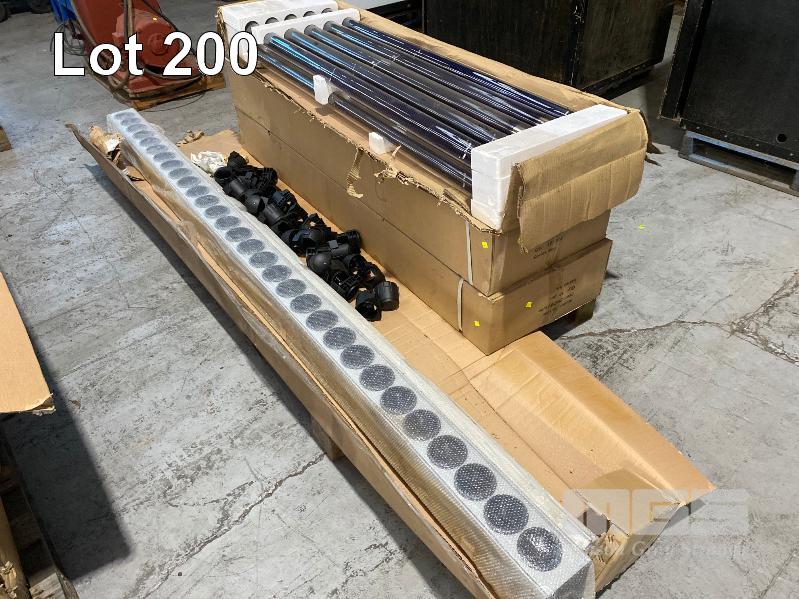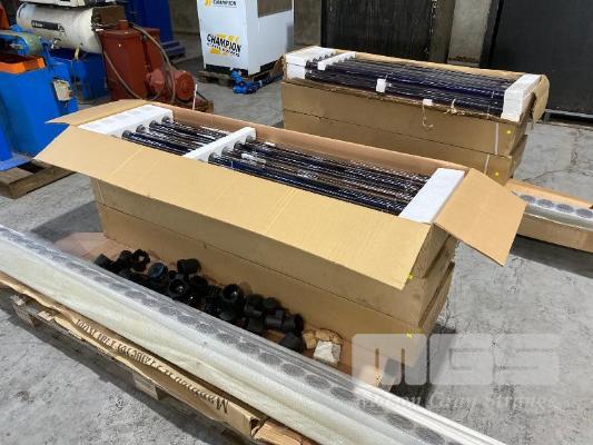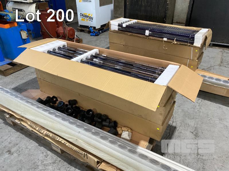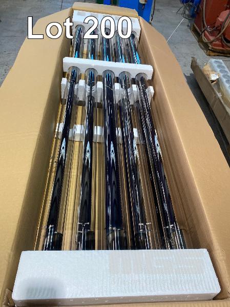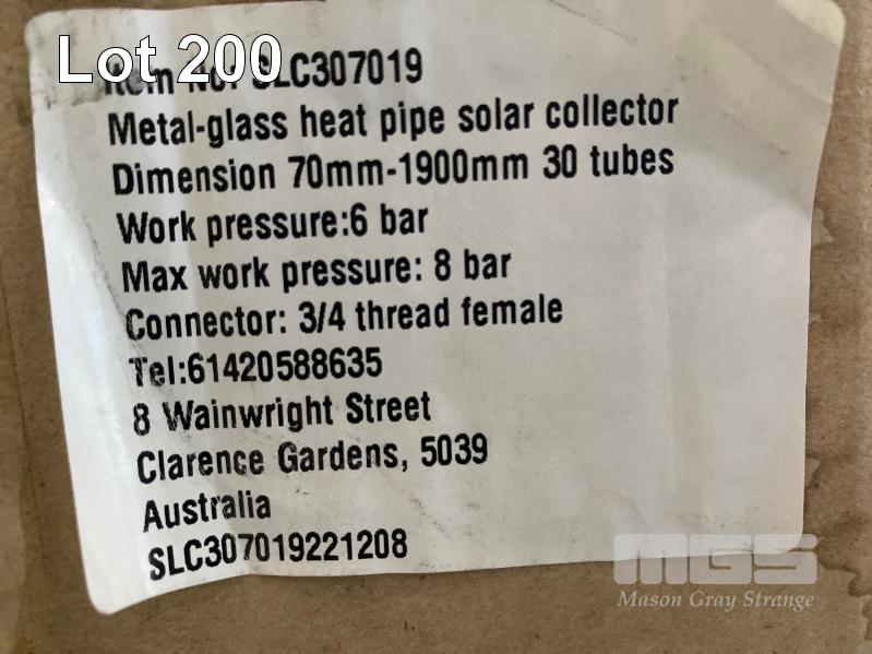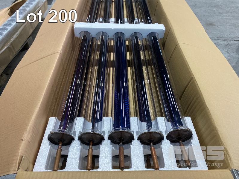 SOLAR ARRAY WATER HEATING TUBES & MANIFOLD 1 x MANIFOLD/FRAME 3 x BOXES OF SOLAR TUBES, 10 PER BOX TUBES ARE VACUUM SEALED, HEAT INTENSIFIES INSIDE TUBE TO TRANSFER HEAT TO COPPER END TIP, THE END TIP FITS INTO MANIFOLD TO TRANSFER HEAT INTO WATER IN THE MANIFOLD. OPENED BOXES