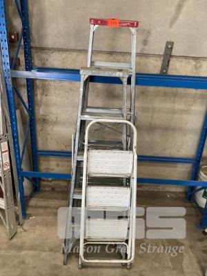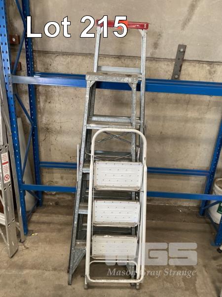 3 x STEP LADDERS, GALV STEEL, GELONG, 1800, 1500 & 1200mm (H)