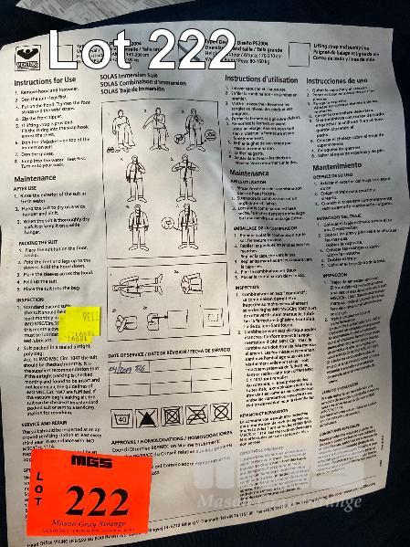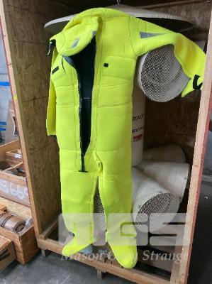 4 x VIKING SOLAS IMMERSION SUITS MOD: PS2004 DOM: 2016 SIZE: UNIVERSAL HEIGHT: 170-210cm WEIGHT: 80-160kg HIGH VISIBILITY YELLOW REFLECTIVE TAPE FOR HIGH VISIBILITY IN THE DARK THERMAL PROTECTION IN COLD WINTER IN CARRY BAG