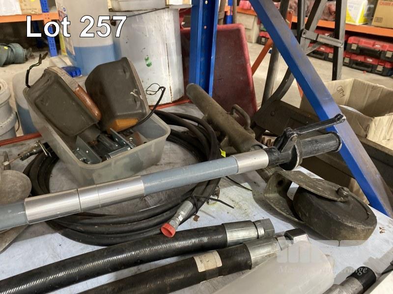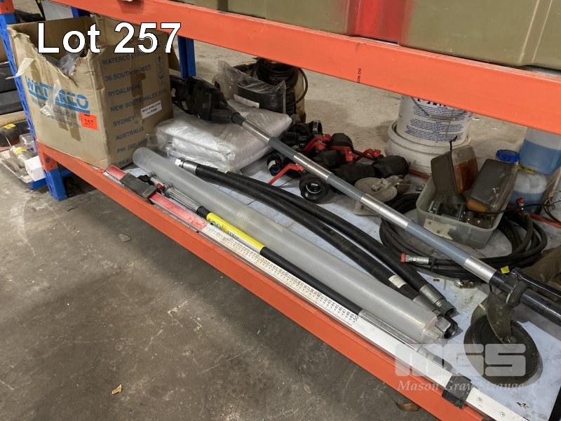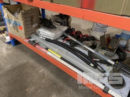 ASSORTED HYDRAULIC HOSES, JOCKEY WHEEL & POLE CLAMP TOOL, ETC