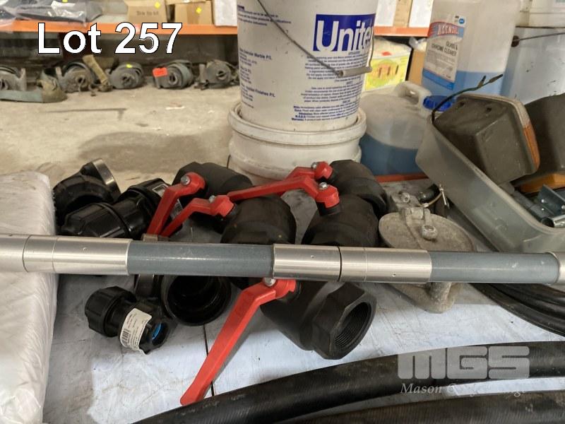 POLE SAW EXTENSION POLE, WHITE PVC TARP, 6 X POLY BALL VALVES, PIPE FITTINGS,