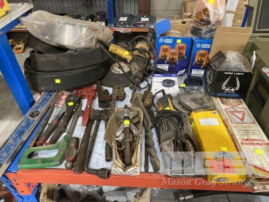 ASSORTED HAND TOOLS, 2 x REVOLVING BEACON LIGHTS,