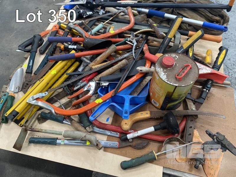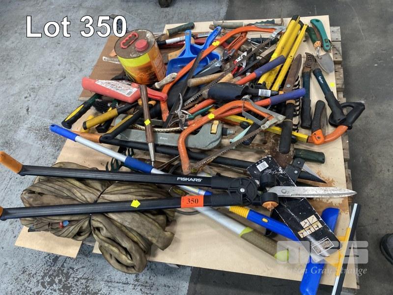 GARDEN TOOLS INC SHEARS, PRUNERS, SAWS, CUTTERS, RACKS, HOES, SPRINKLERS, ETC