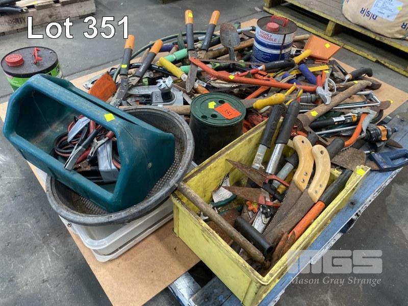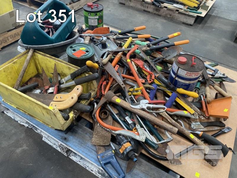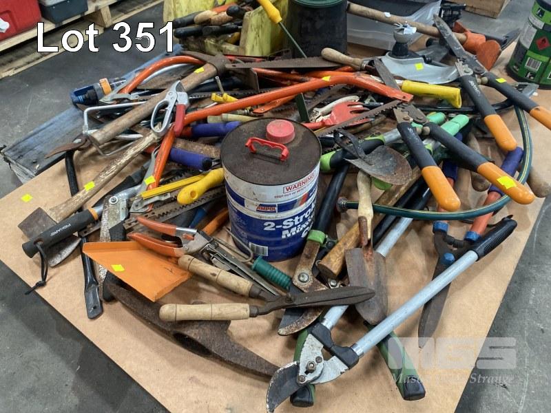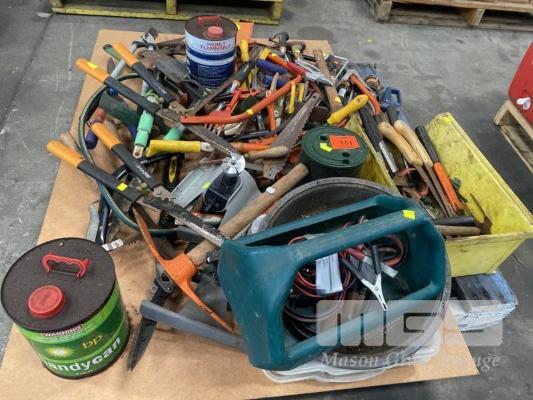 GARDEN TOOLS INC SHEARS, PRUNERS, SAWS, CUTTERS, RACKS, HOES, SPRINKLERS, ETC