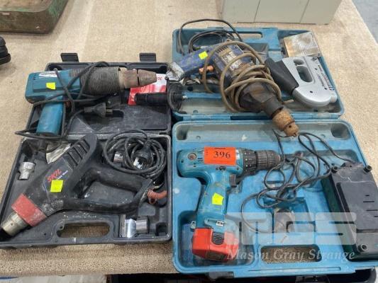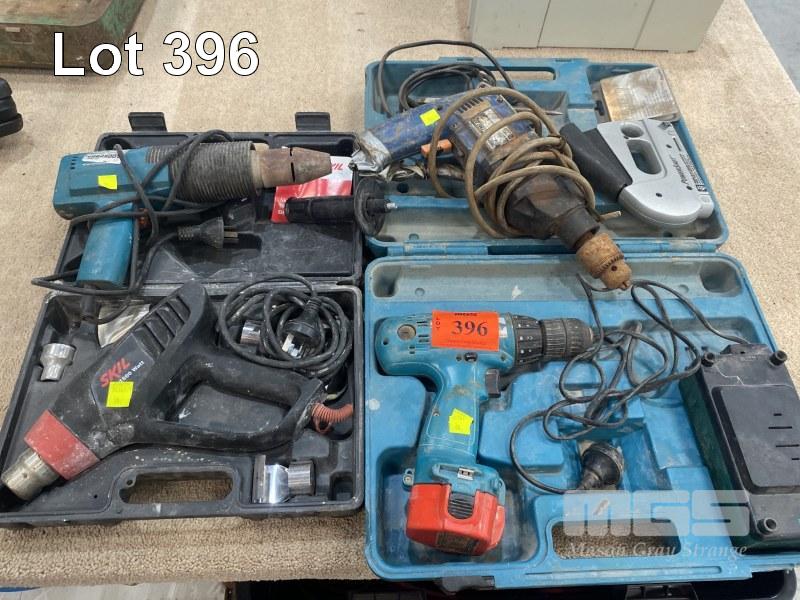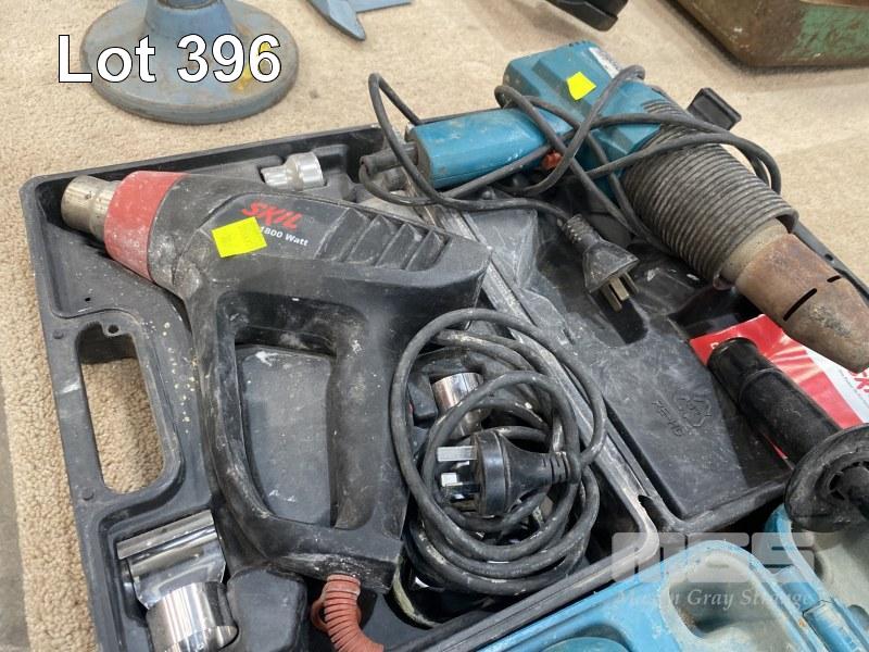 2 x HEAT GUNS, SKIL & BLACK & DECKER & 2 x DRILLS, 240V & CORDLESS