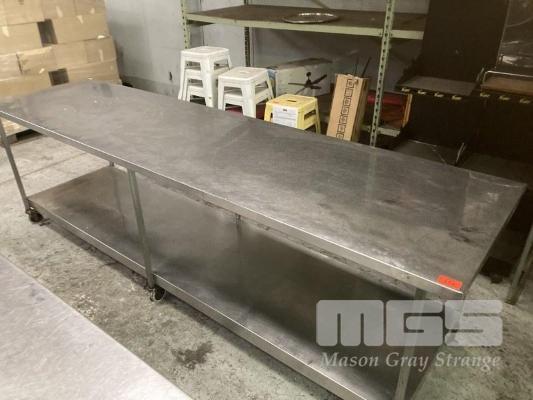 MOBILE STAINLESS STEEL PREP BENCH, 300 x 80cm, 2 TIER