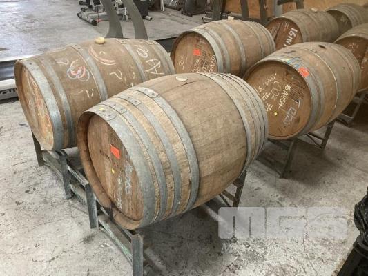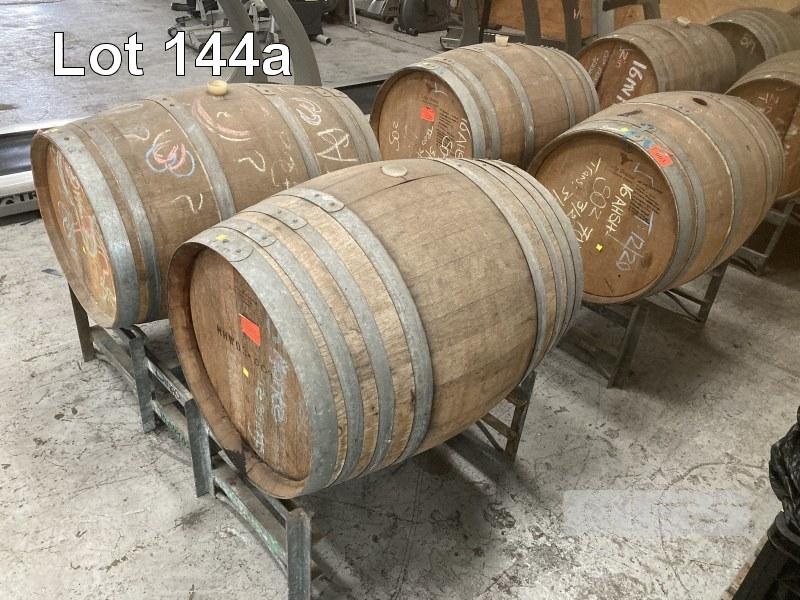 4 x WINE BARRELS WITH CONTENTS, (UNKNOWN) & STANDS