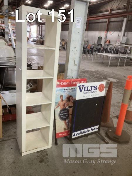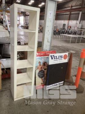2 x SIGNBOARDS & 5 CUBE SHELF UNIT